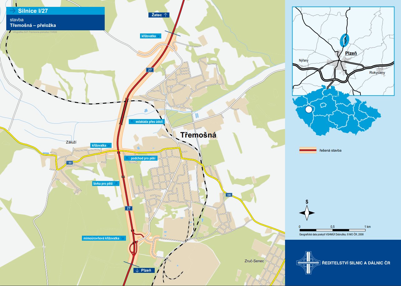 Zprovozněná přeložka silnice I/27 je řešena jako západní obchvat města Třemošná. Stávající silnice I/27, která vedla přes město, byla směrově i výškově nevyhovující a negativně ovlivňovala životní prostředí ve městě, proto byla navržena její přeložka.
